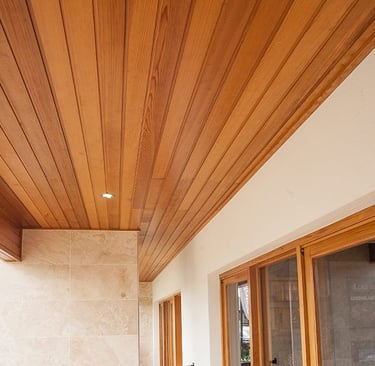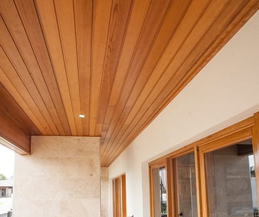 O forro de mirindiba oferece charme e resistência, com tonalidade clara e acabamento natural que valoriza qualquer ambiente. É uma madeira nobre, durável e sustentável.